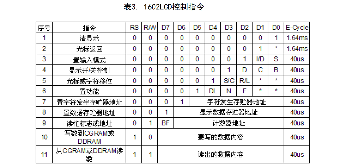 给出1602控制字表: